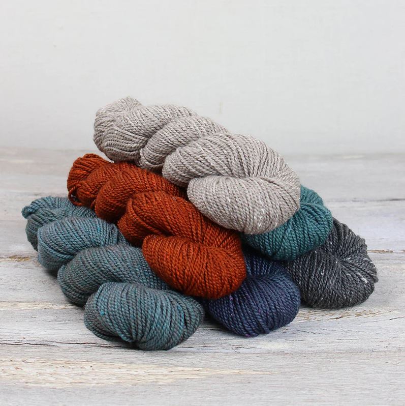 In this unique yarn, the lofty, soft merino wool is combined with slubby silk noil and baby alpaca. The silk and alpaca add shine and drape to the yarn, creating a rustic but inviting texture! The wool is kettle dyed, producing slight color variations that add subtle depth the finished fabric. We recommend alternating 2 skeins to ensure an overall blended appearance.