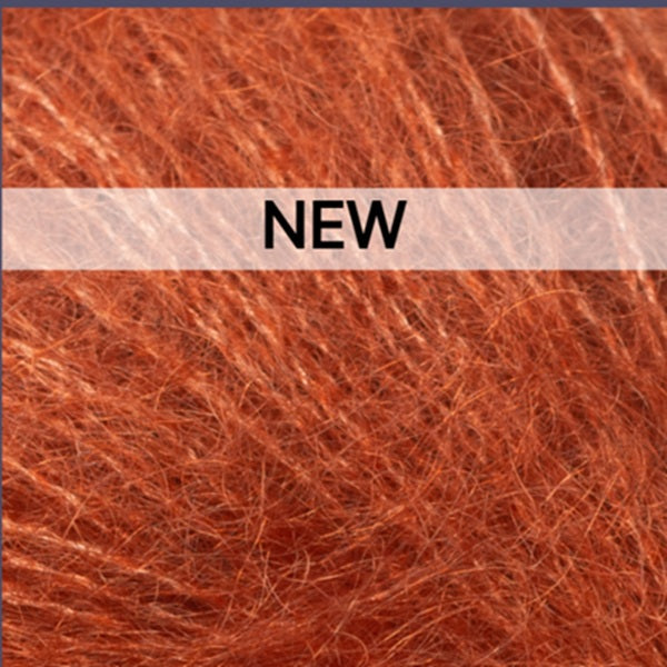 This airy and light mohair and silk blend yarn comes in soft solids and multicolors that look like watercolor paints in your project. It is a perfect yarn to carry along with any work horse yarns to give a soft halo to the fabric. Or, you can always use it alone to make a soft and airy fabric. Italian made, the chic style and elegance really comes through!