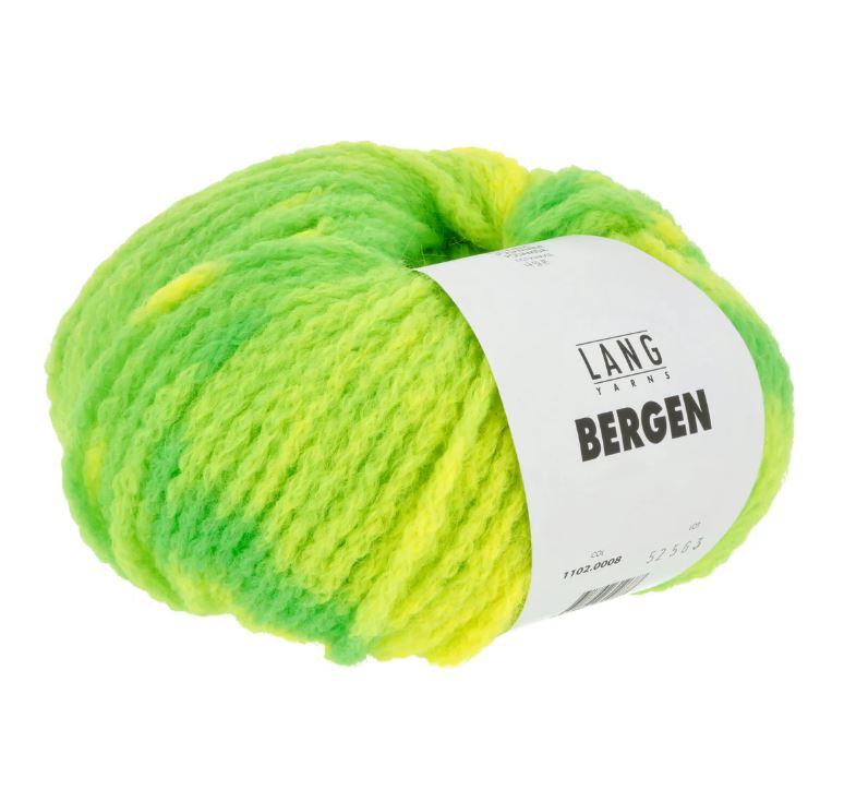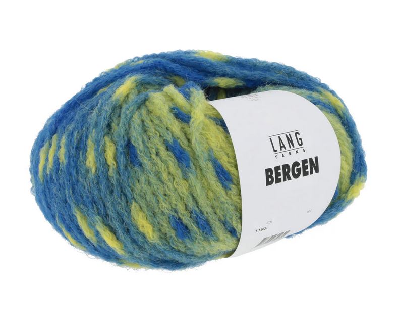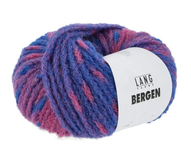 Bergen is a brighter version of Snowflake, by Lang Yarns. It makes such an interesting fade in and out of pattern when it's worked. The chainette construction makes it light and airy, but next-to-the-skin soft with superfine alpaca.